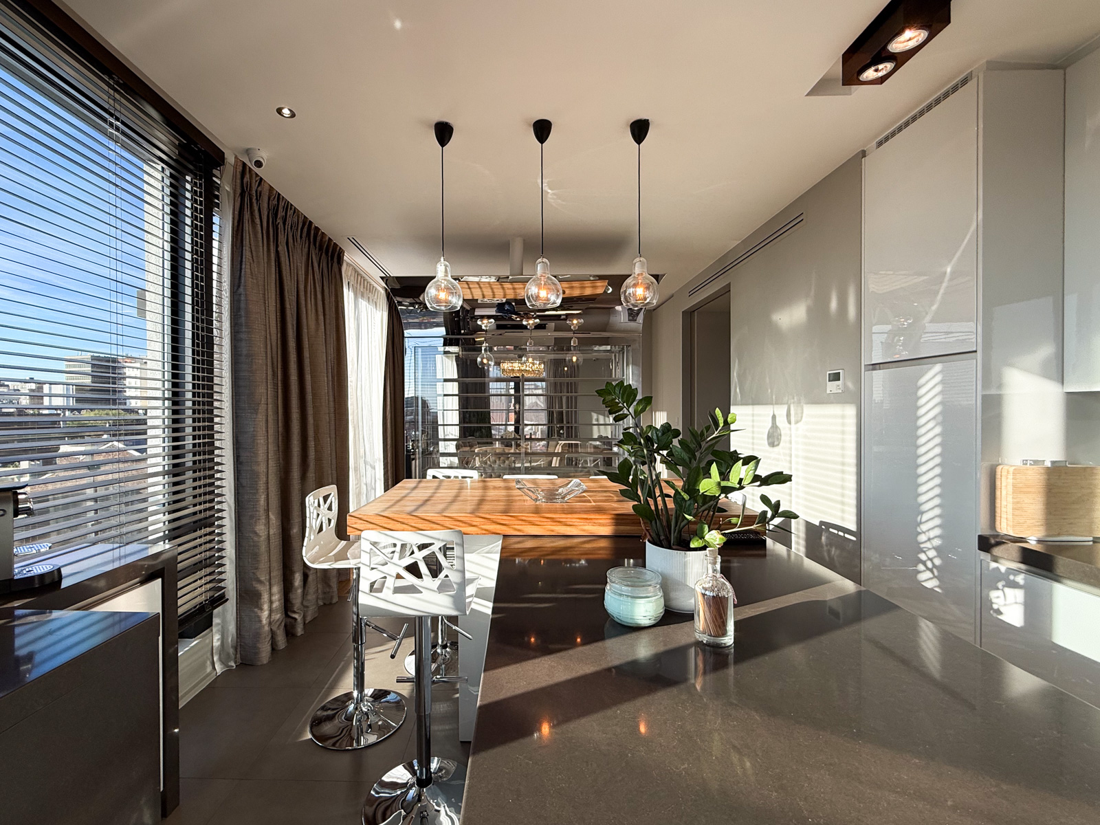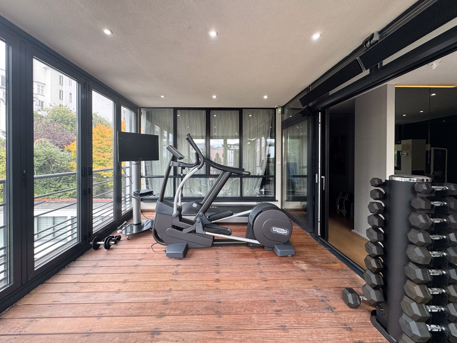 L’appartement bénéficie d’un ascenseur privatif et de portes de secours anti-incendie et portes blindées. Air conditionné. Chauffage au sol. Chaudières individuelles au gaz. Double vitrage, domotique, système d’alarme et détecteur volumétrique.