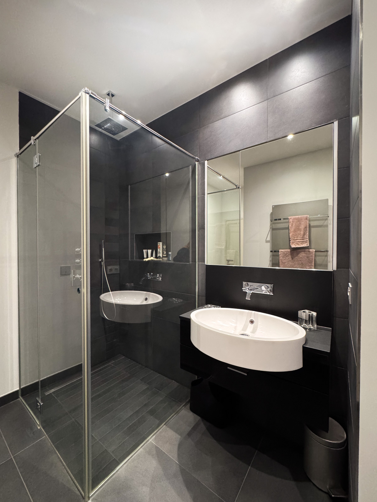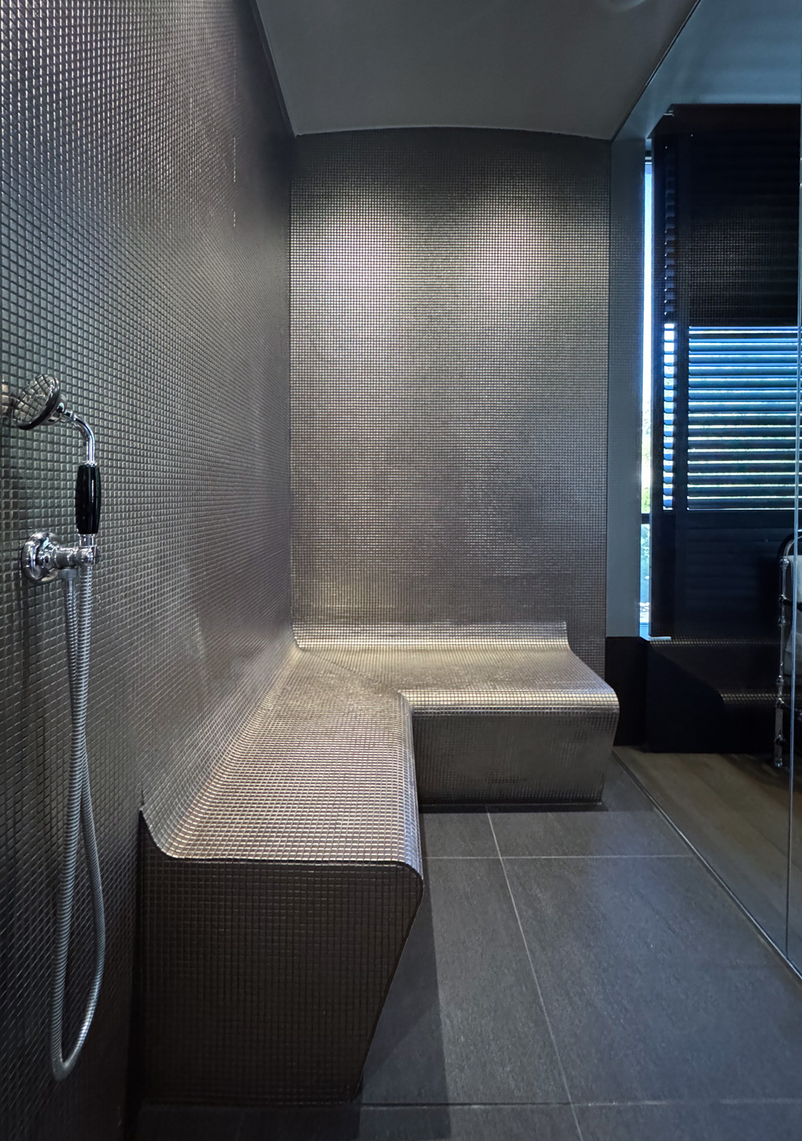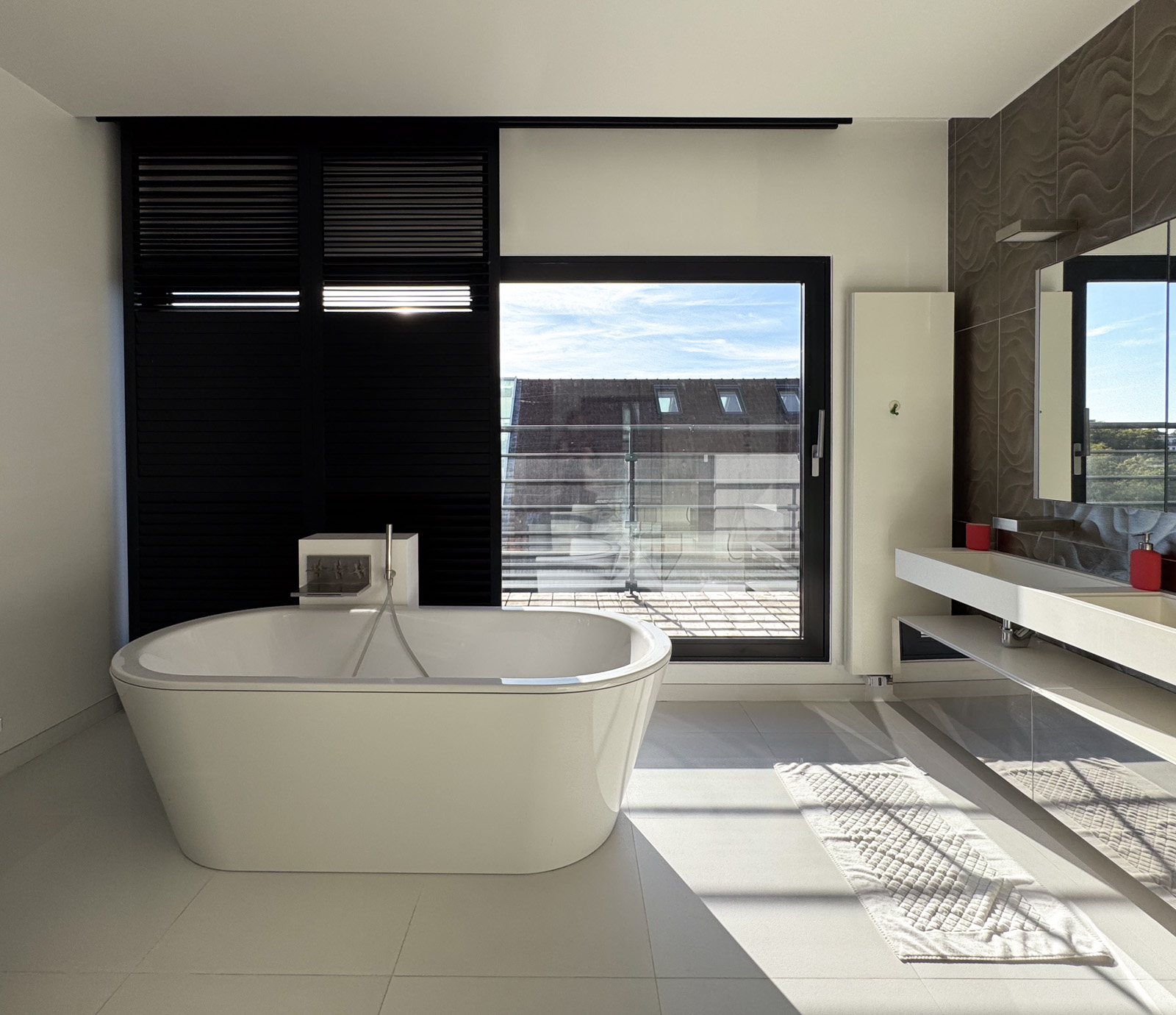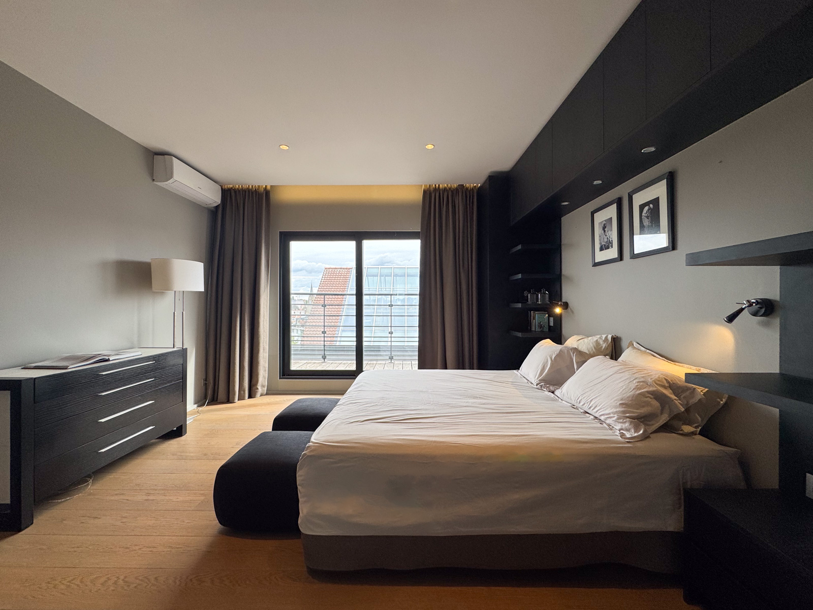Au 4ᵉ étage, la zone nuit se compose de deux somptueuses master bedroom et de deux chambres supplémentaires. La première master bedroom (± 36 m²) comprend une chambre avec dressing et une salle de bains/douche avec WC séparé (± 14 m²), avec accès à une terrasse orientée sud-est. La seconde master bedroom (± 50 m²) propose une chambre, un bureau, un dressing ainsi qu’une une salle de bains/douche avec hammam et un WC séparé (± 23 m²) et une salle de sport avec vue panoramique (± 20 m²). Deux chambres supplémentaires (± 20 m² chacune) disposent chacune d’une salle de douche et de WC, avec accès direct à la terrasse.