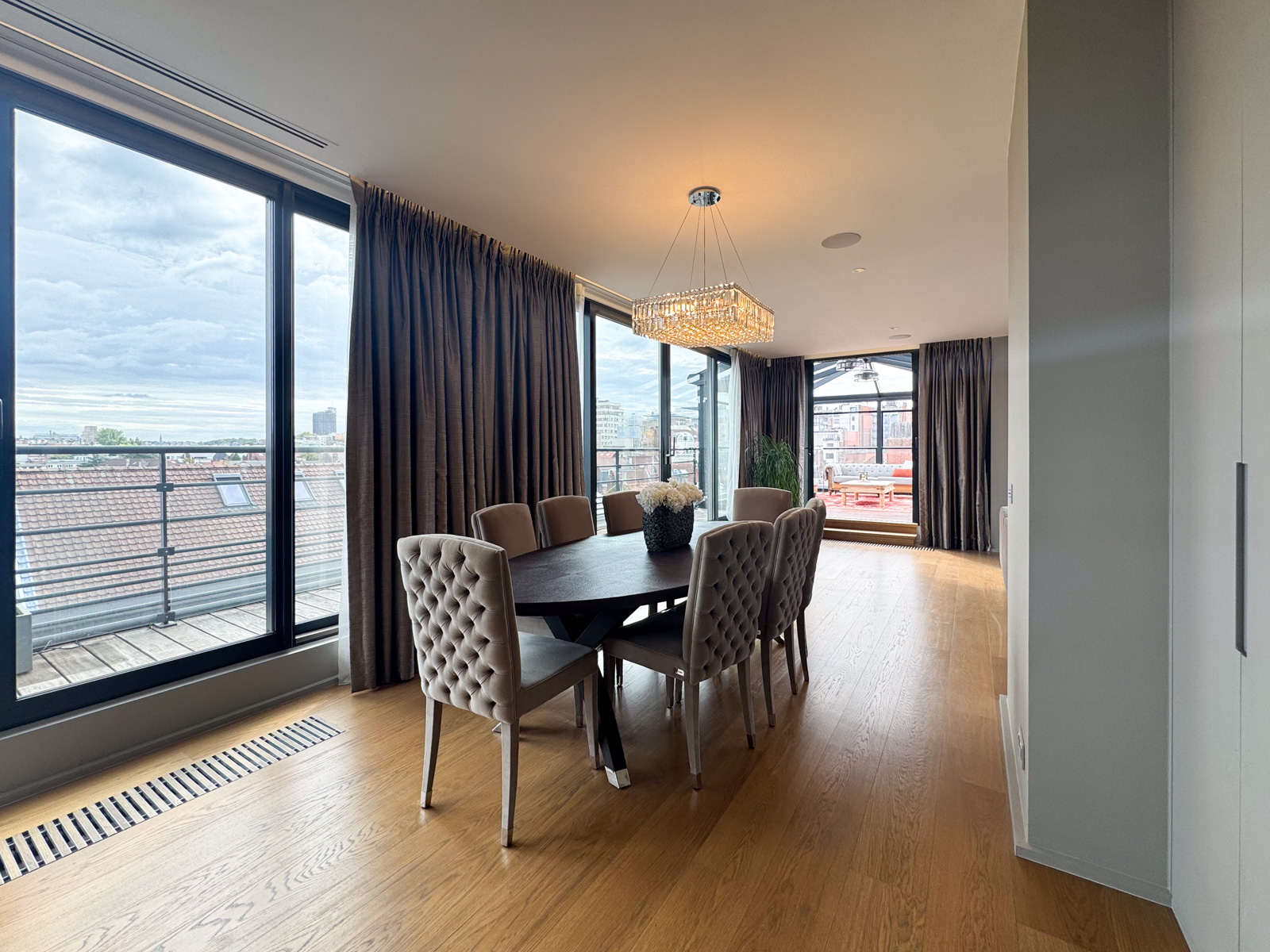 Situé au cœur du quartier Louise, entre le Châtelain et la place Flagey, ce penthouse d’exception s’étend sur les 4ᵉ et 5ᵉ étages d’un immeuble entièrement rénové en 2012. D’une superficie totale de ± 421 m², ce bien rare, à l’origine composé de deux unités distinctes, a été subtilement réuni en un seul appartement aux volumes généreux, baigné de lumière et bénéficiant de finitions particulièrement soignées.